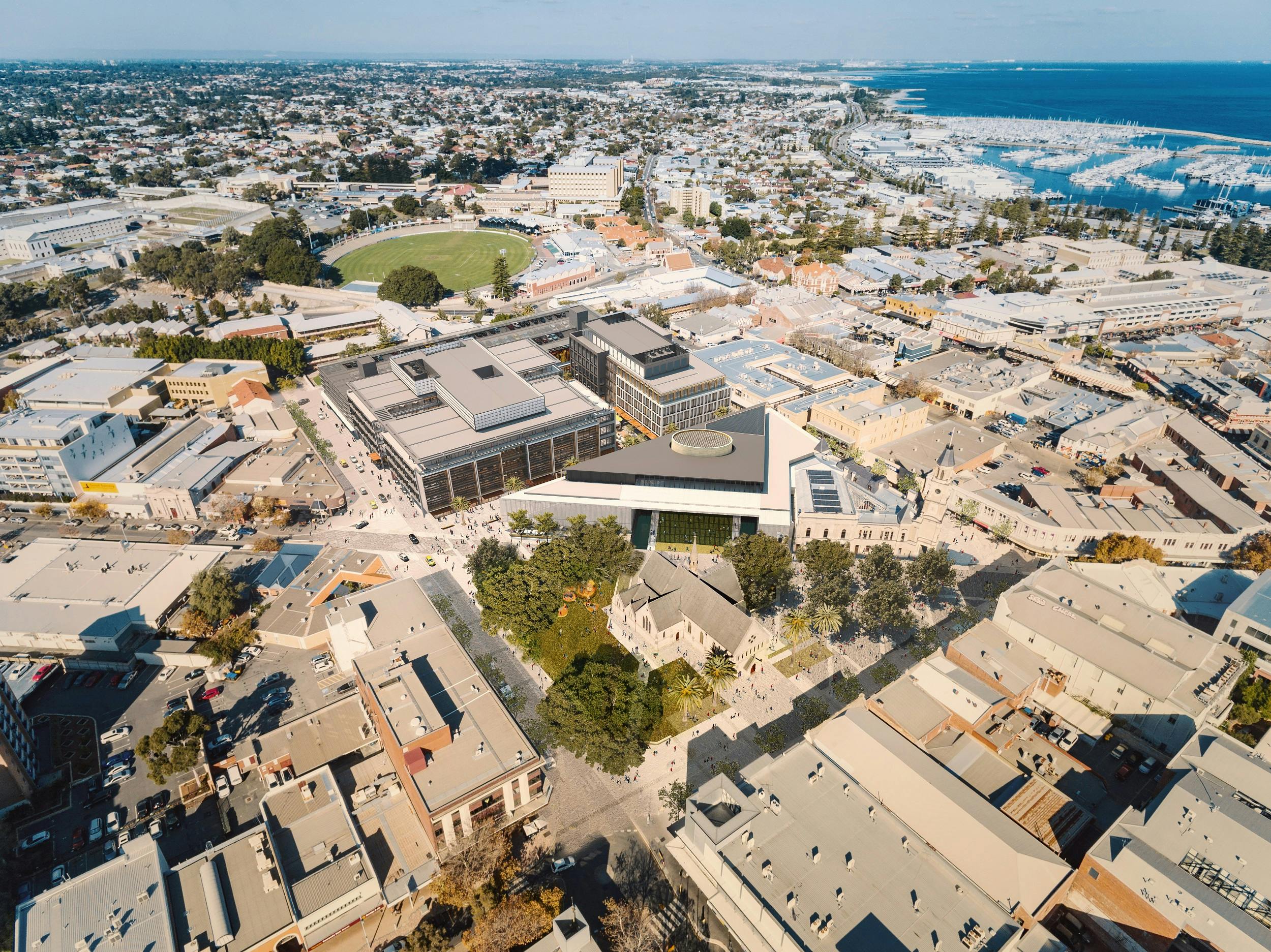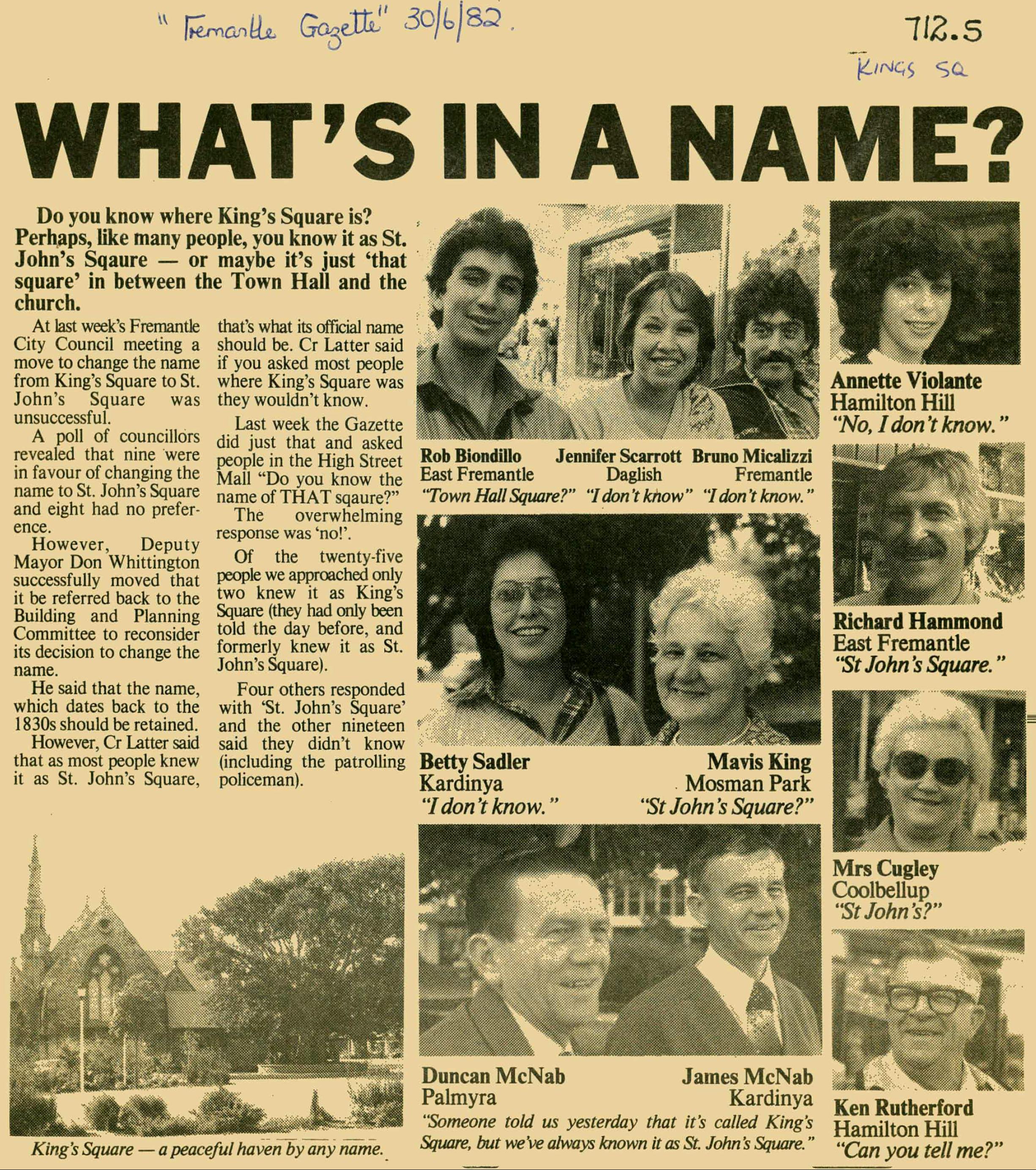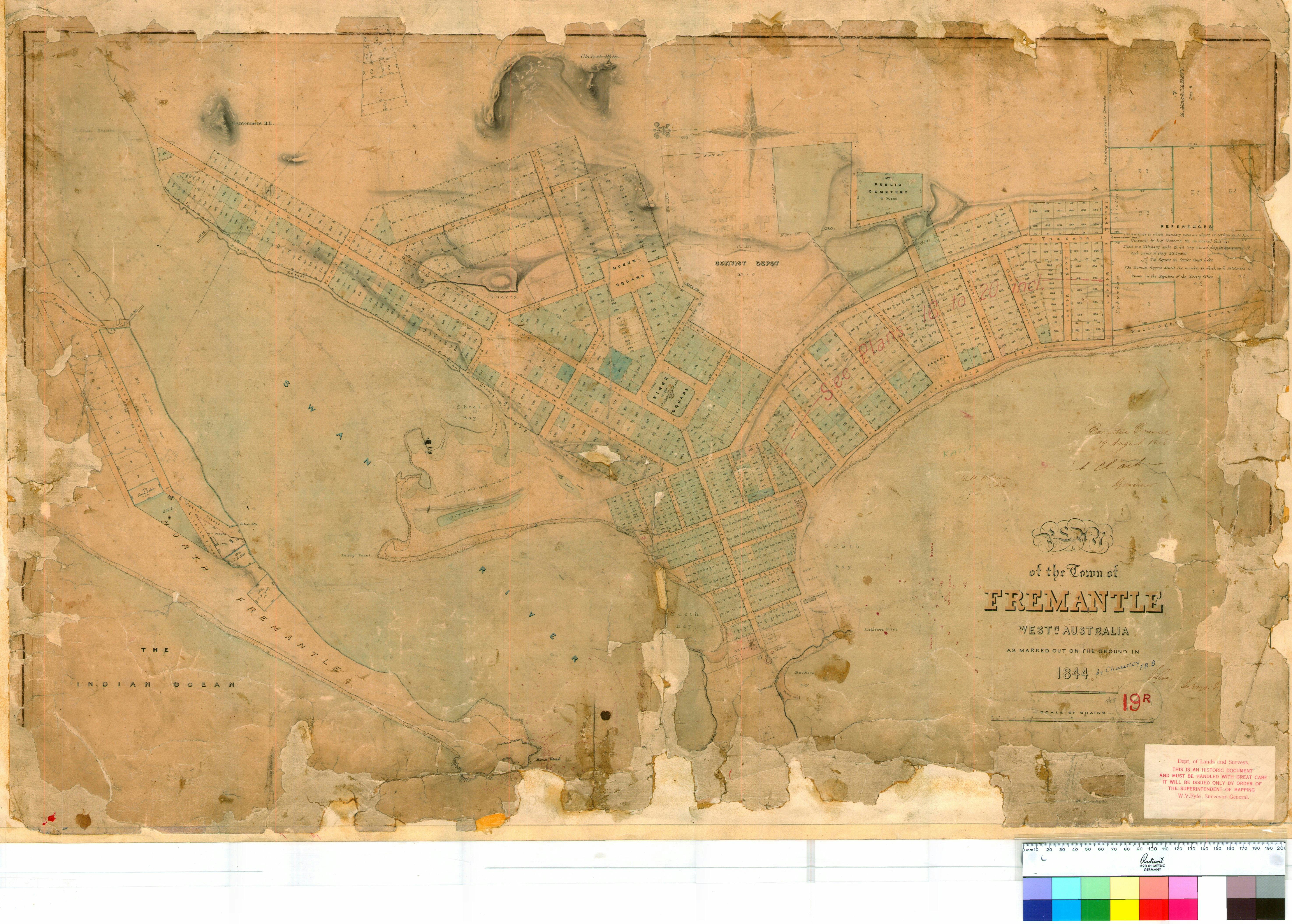 Kings Square was marked in its current location on the official 1833 version of the town plan for the colonial settlement of Fremantle, prepared by Surveyor-General John Septimus Roe. Illustrations and accounts from around this time show Fremantle was still largely undeveloped.