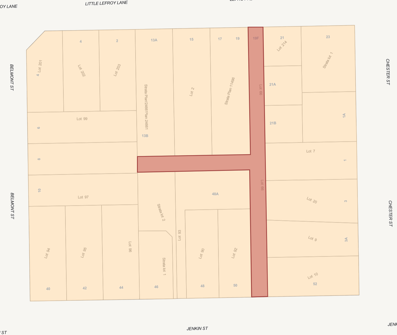 At the 13 August 2025 Ordinary Council Meeting the Council considered a request for the upgrade and dedication of the Right of Way at 19F Lefroy Road, South Fremantle. Council resolved to support the proposal for the purpose of community consultation. The proposal relates to the location in red below: